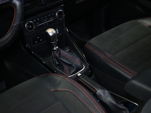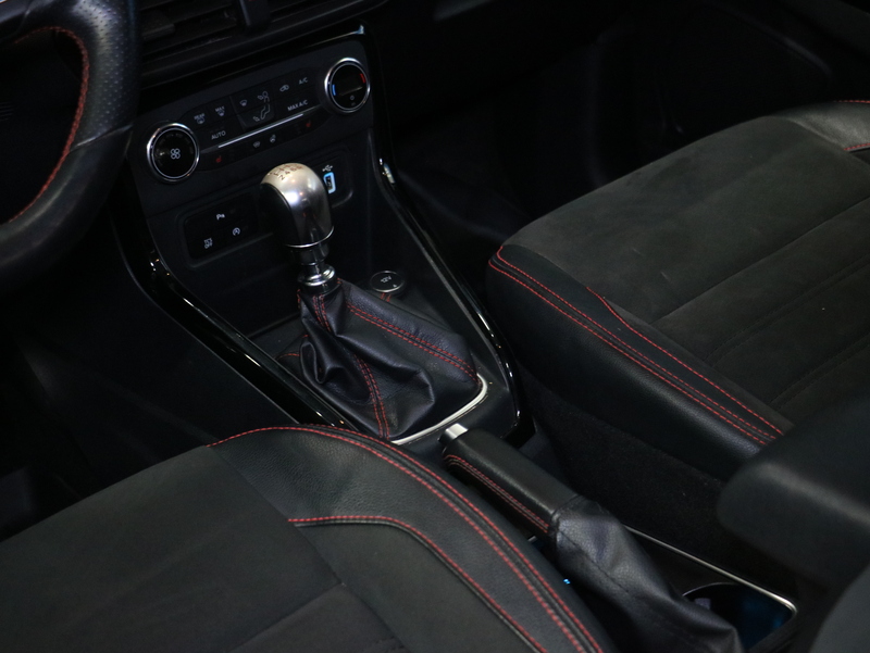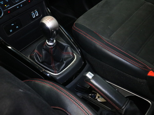 Nahkaverhoiltu vaihteenvalitsin ja käsijarrukahva