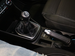 Nahkaverhoiltu vaihteenvalitsin ja käsijarrukahva