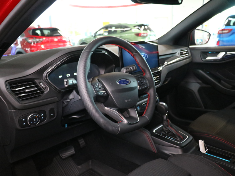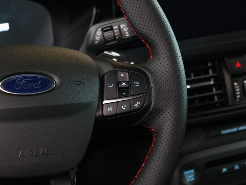 Sensico-verhoiltu ohjauspyörä punaisilla tikkauksilla
