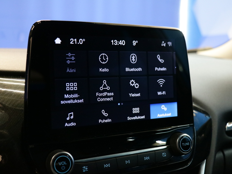 Suomenkielinen SYNC navigointi&viihdejärjestelmä 8" kosketusvärinäytöllä, 7 kaiutinta, BT-handsfree, 2 USB-porttia, Apple Carplay- / Android Auto-tuki